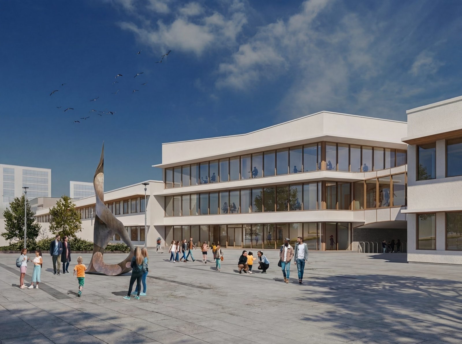 Vanha päiväkodin siipi ehdotettiin purettavaksi, sillä se vei paljon tilaa tontilta yksikerroksisuudellaan ja oli vähäisessä roolissa kaupunkikuvassa. Uusi korvaava siipi rakennettaisiin kaksikerroksisena ja hieman eri orientaatiolla, joka mahdollistaisi koululle suuremman piha-alueen. Kulman nuorisotilojen siipi myös purettaisiin, mutta uudelleenrakennettaisiin kunnioittaen sen kaupunkikuvallista merkitystä ja nykyisiä tilastandardeja. Tämä muutos tekisi samalla koko korttelista esteettömän.